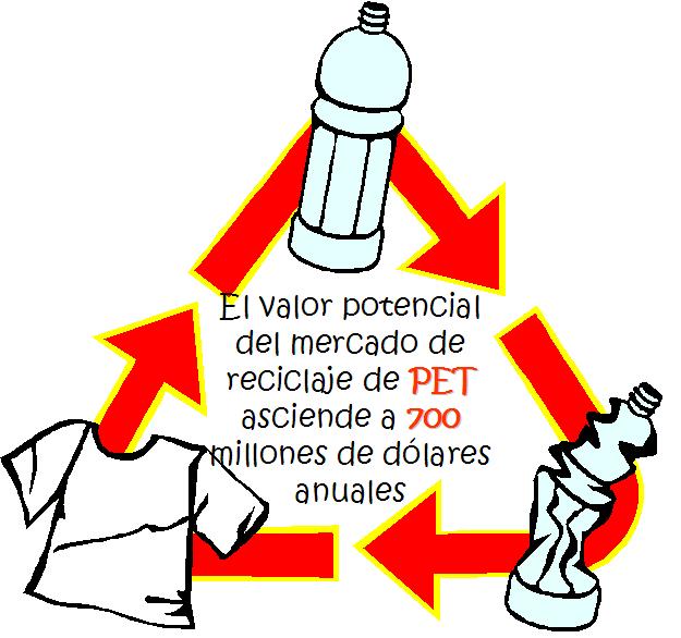 Se calcula que el valor potencial del mercado de reciclaje de PET asciende a 700 millones de dólares anuales; sin embargo, hasta el momento sólo se aprovecha alrededor de 15% de lo que se produce en el país. El valor actual de la incipiente industria de reciclaje de PET en México se calcula en $44 millones de pesos.